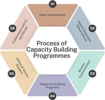 MIE has developed several upskilling programs to equip facilitators with innovative pedagogical strategies that promote active and holistic learning experiences for students in alignment with NEP 2020 and NCF 2023. An overview of all the programs is depicted below